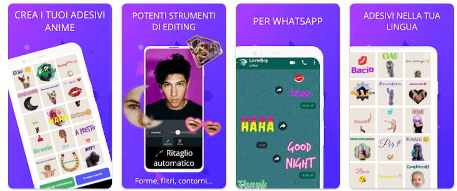 Nato per creare adesivi per whatsapp, ha una galleria di adesivi molto belli, nei quali è possibile inserire il testo. E’ però un po’ limitante e macchinoso per chi non è tanto pratico nella modifica degli adesivi.